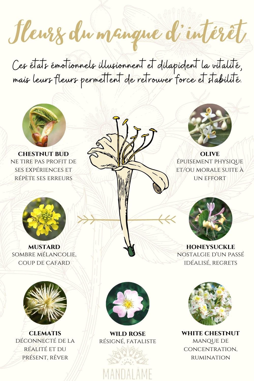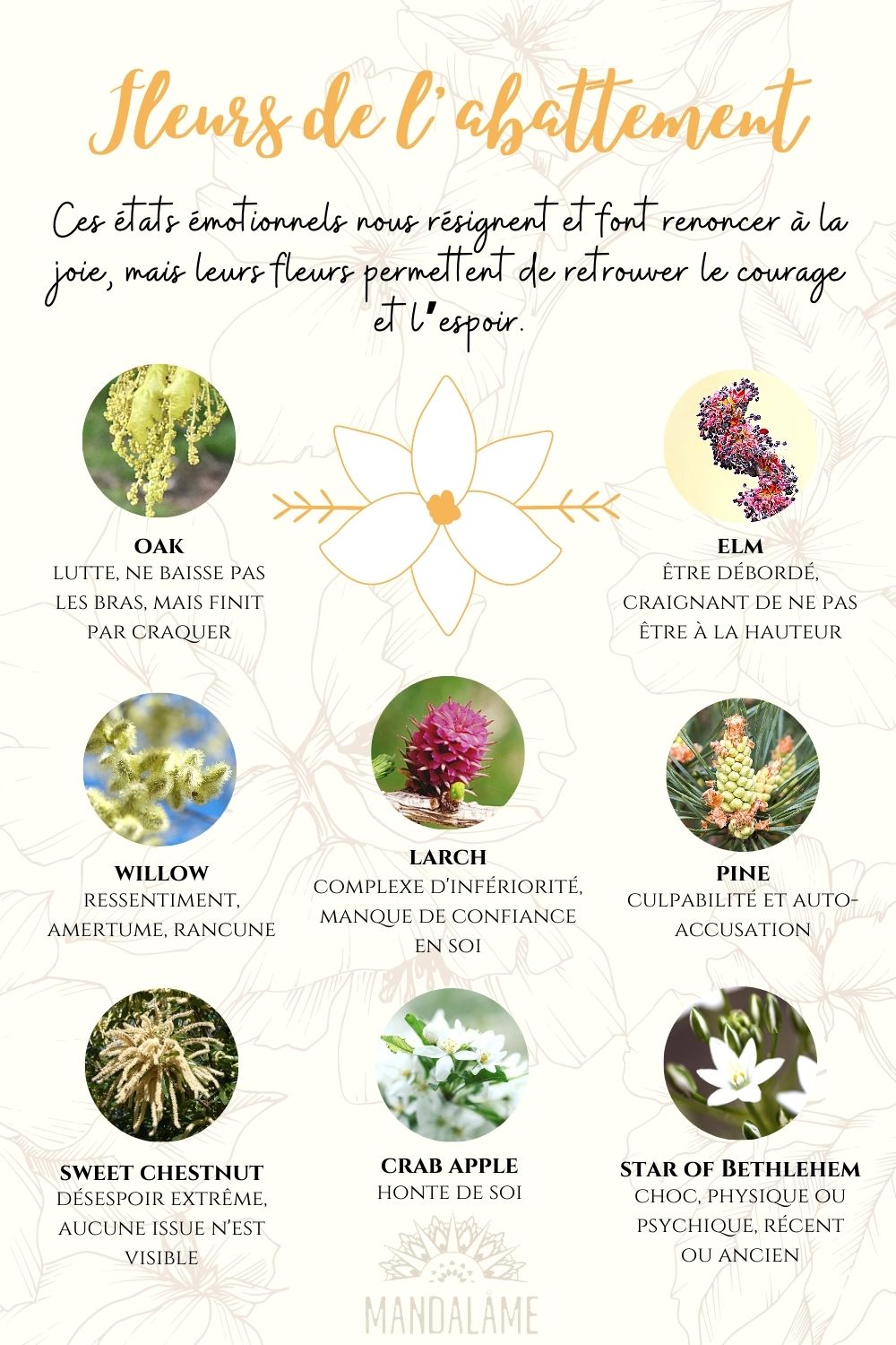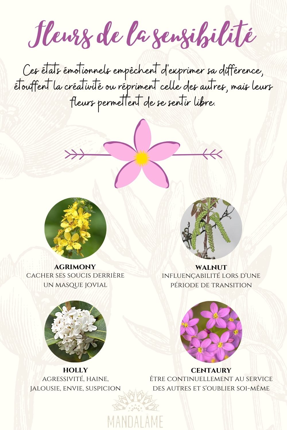 En florithérapie, des familles d'émotions ont été définies par le Dr Bach pour faciliter le travail d'introspection et la recherche des élixirs floraux qui vous correspondent, ces dernières ont été répertoriées dans 7 grandes familles correspondant à des états émotionnels spécifiques.