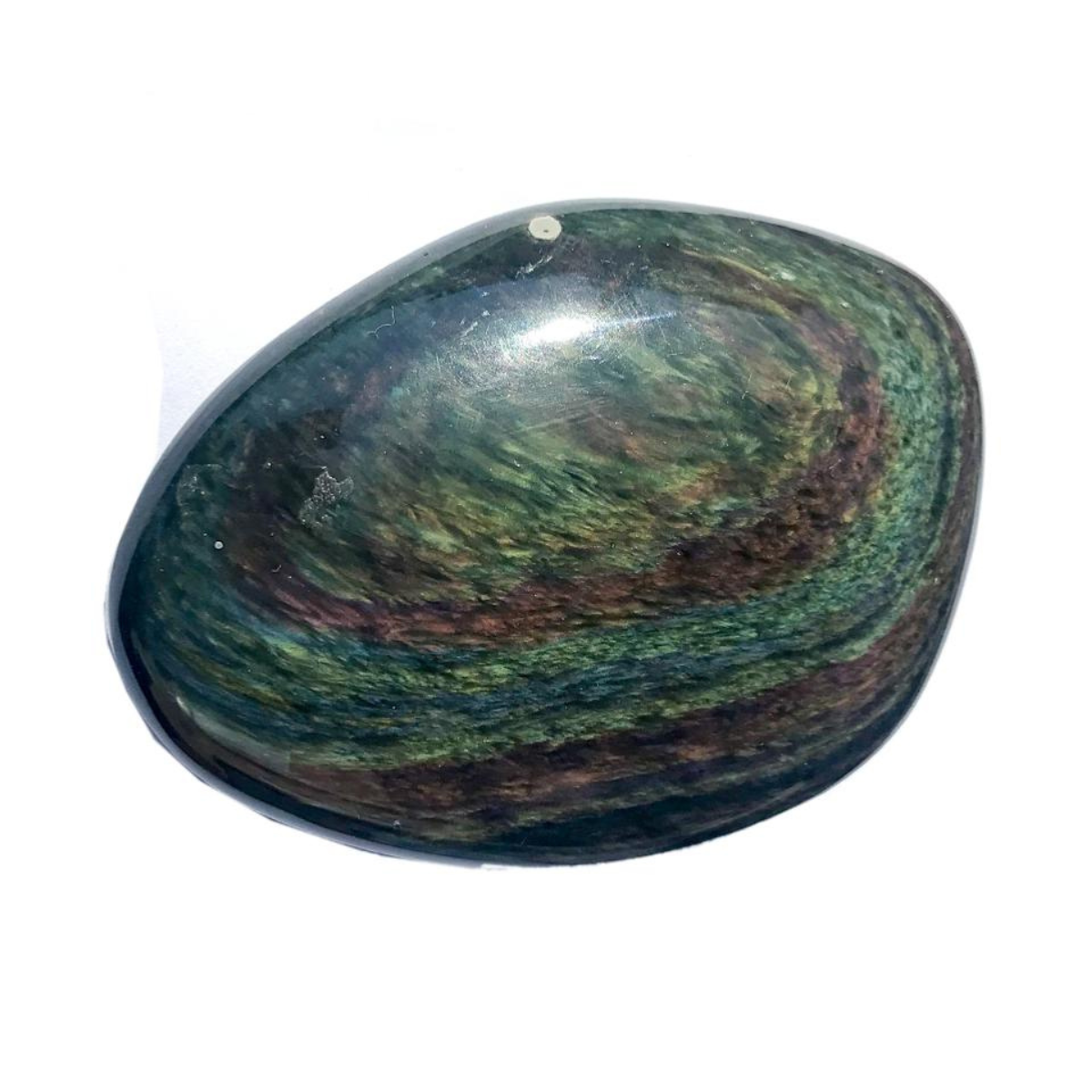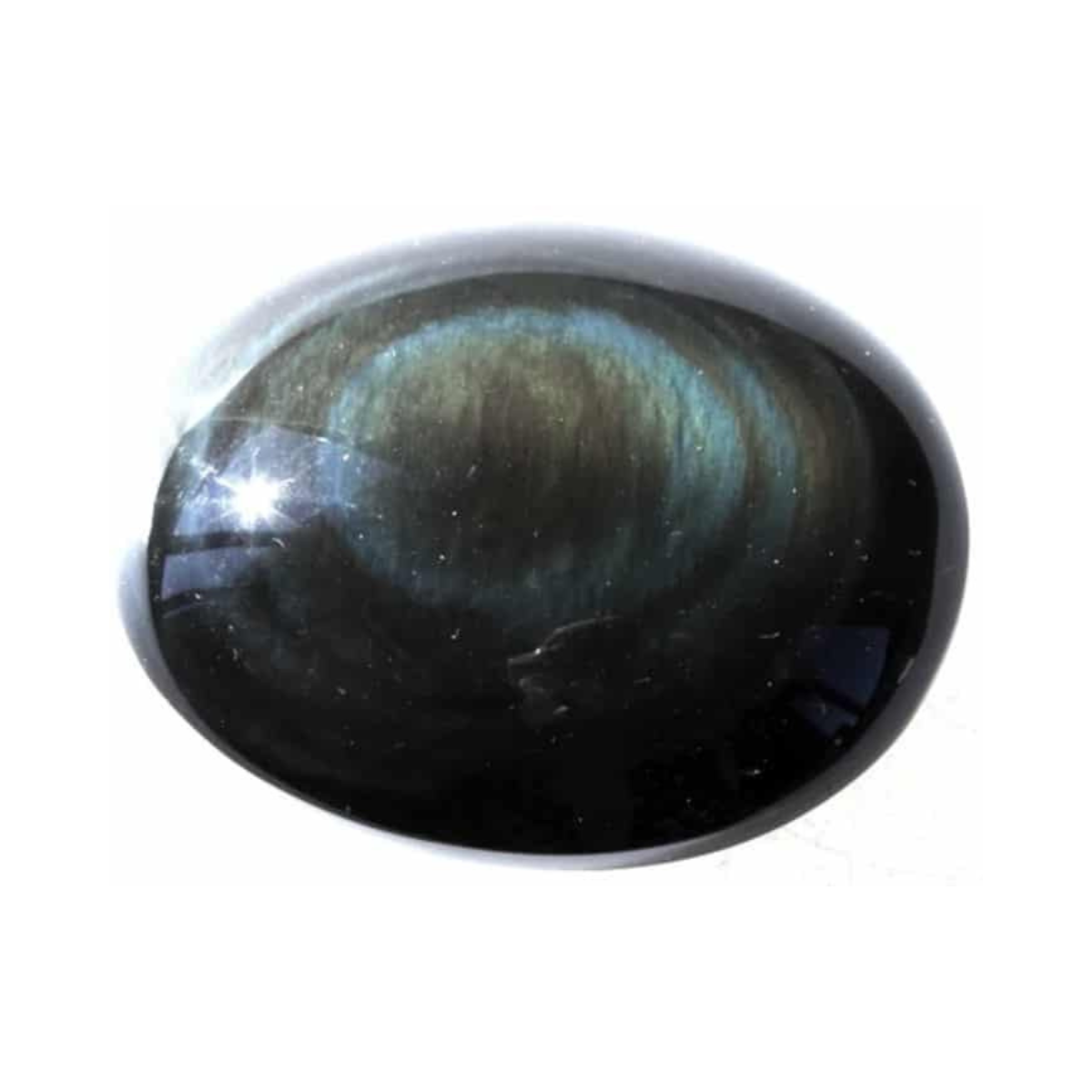L' Obsidienne Œil Céleste ou Arc-en-ciel comporte des reflets multicolores en forme de ligne ou de cercles. C'est un puissant talisman de protection, réputé pour purifier l'aura, éloigner les malédictions et les attachements spirituels négatifs, favorisant fortement les capacités extrasensorielles.