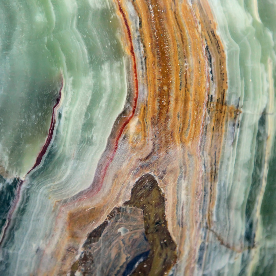 L' Onyx Vert, allant du vert pâle au vert foncé, est réputé pour stimuler la croissance personnelle et encourager la prise de décision. Il harmonise l'environnement et les relations.