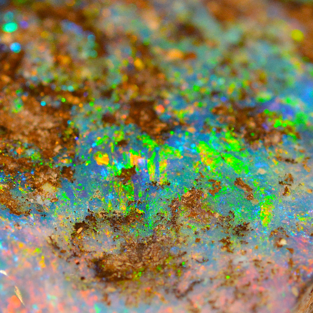 L' Opale Boulder comporte des éclats multicolores saisissants pris dans des veines de fer ou de grès. Elle apporte joie et espérance, force et stabilité et facilite l'accès aux annales akashiques.