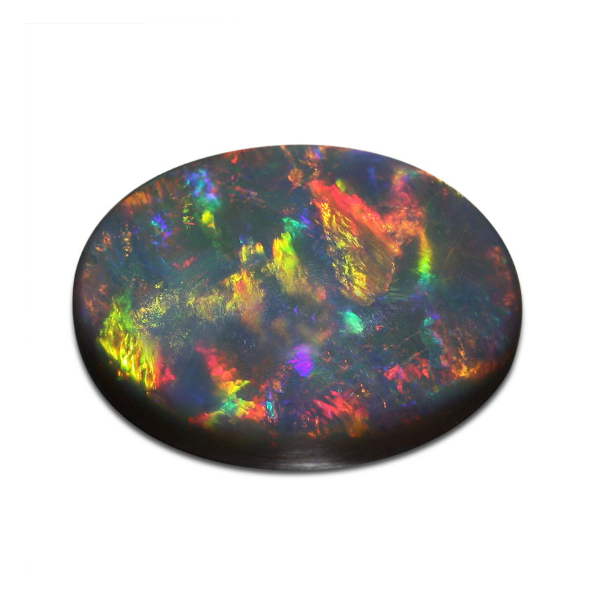 L' Opale Noire arbore comporte des éclats multicolores sur un fond sombre. Elle est associée à la protection et à l'introspection soutenant le processus de transformation personnel.