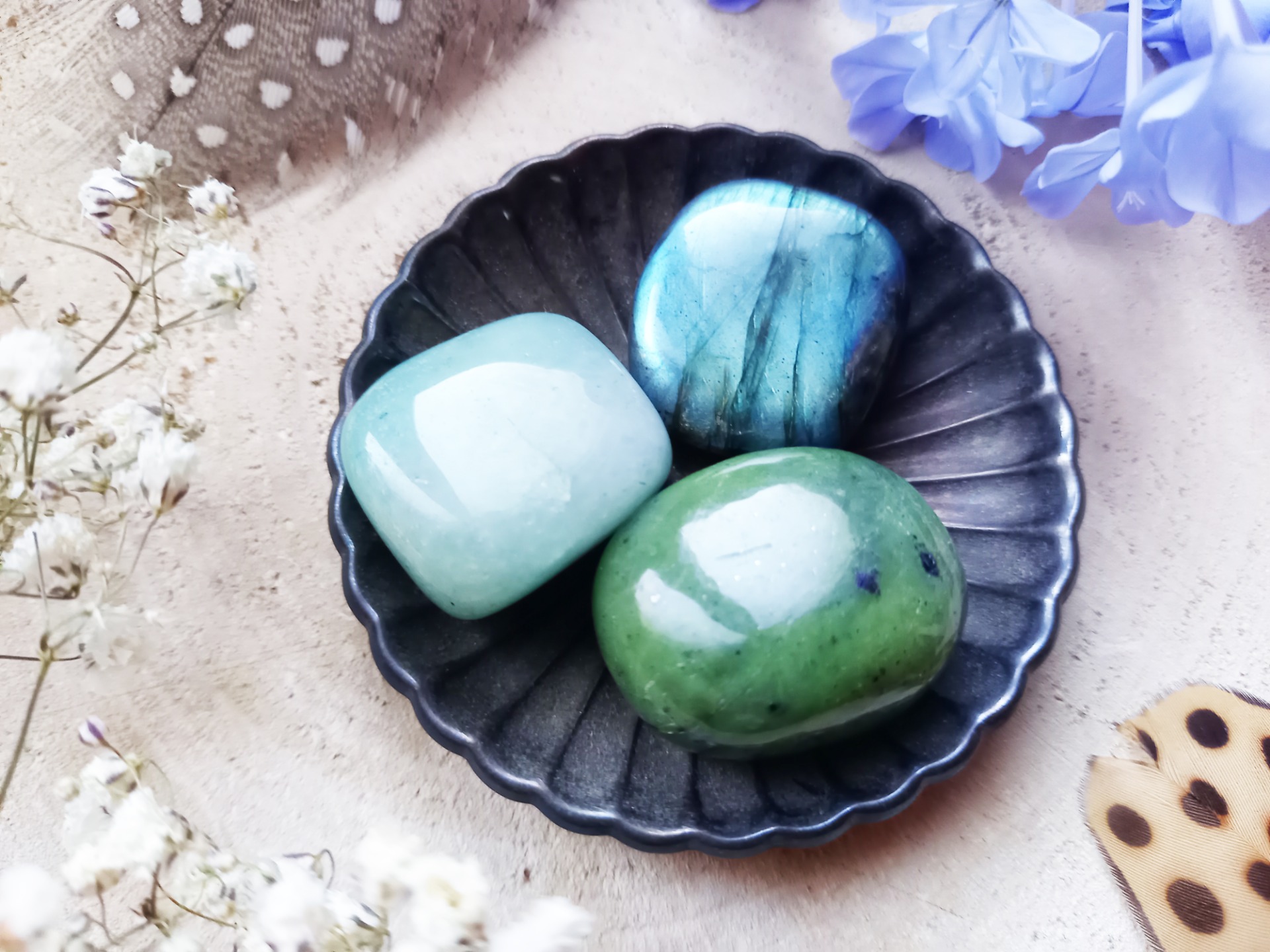 Il est intéressant de porter chacune des pierres sur soi par alternance, de quelques jours à quelques semaines. Commencez par exemple par le port de la labradorite, qui absorbera toute la négativité plombante et ouvrira votre mental, puis passez à l'aventurine verte qui vous aidera à visualiser toutes les formes d'abondances qui peuvent exister dans votre vie, et enfin le jade vous ouvrira les portes de la prospérité selon votre niveau de conscience. Vous pouvez refaire un cycle complet lorsque vous voyez que votre esprit se ferme aux opportunités.