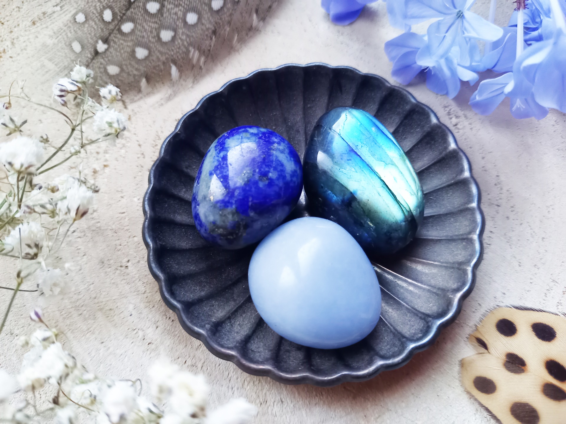 Angélite : pour éveiller et aiguiser l'intuition, protège tout en ouvrant la porte à une perception psychique accrue.