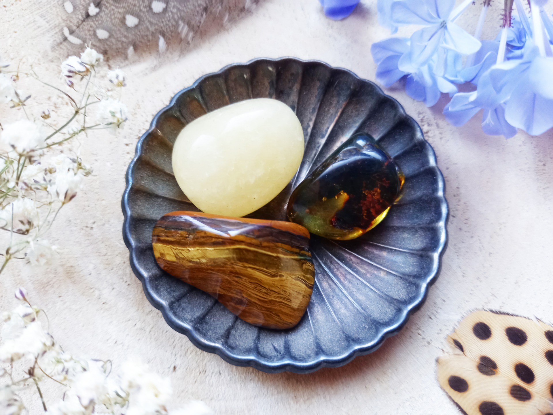 Il est intéressant de porter chacune des pierres sur soi par alternance, de quelques jours à quelques semaines. Commencez par exemple par le port de l'ambre, pour trouver du réconfort et dissiper les émotions négatives qui vous submergent, puis passez à la calcite orange pour finir de nettoyer votre champ énergétique de tous ces parasitages, et enfin l’œil de tigre vous aidera à reprendre le dessus et à avancer positivement en plus de vous protéger de la négativité. Vous pouvez refaire un cycle complet dès que vous sentez que des pensées obsédantes ou négatives vous envahissent.