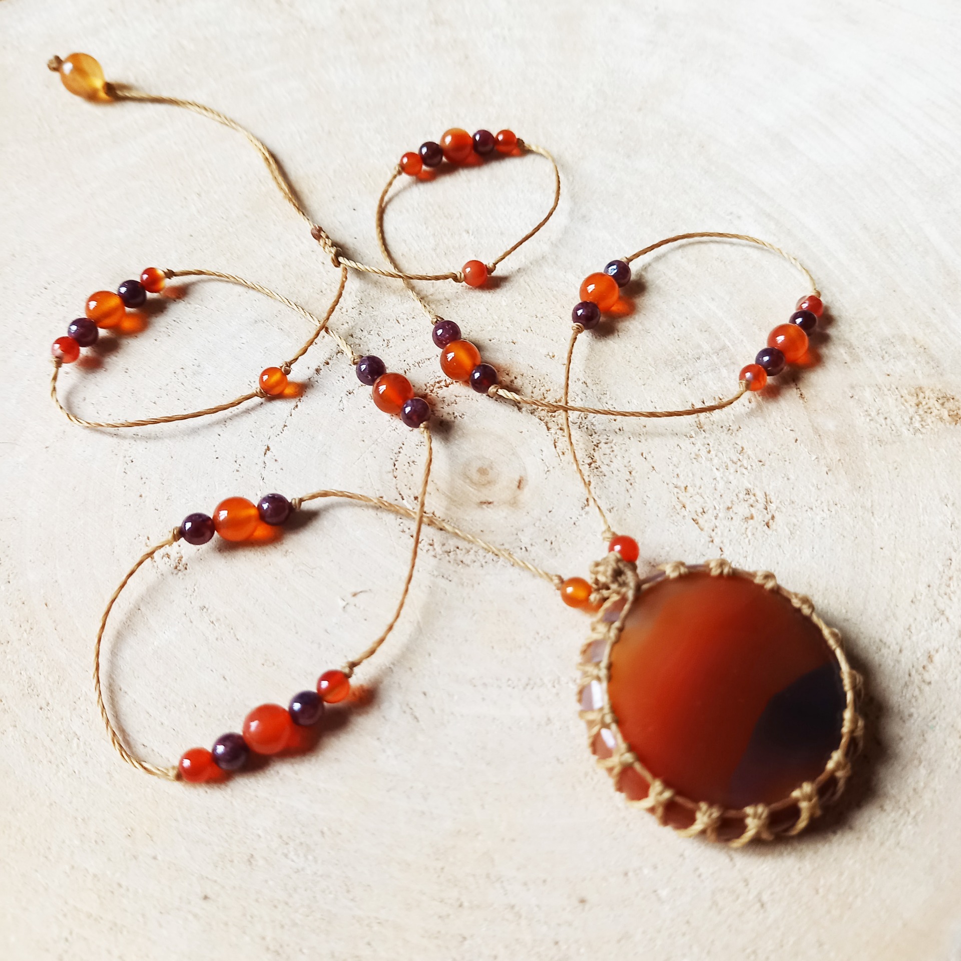 Sautoir en Cornaline, délicat et poétique, agréable à porter.