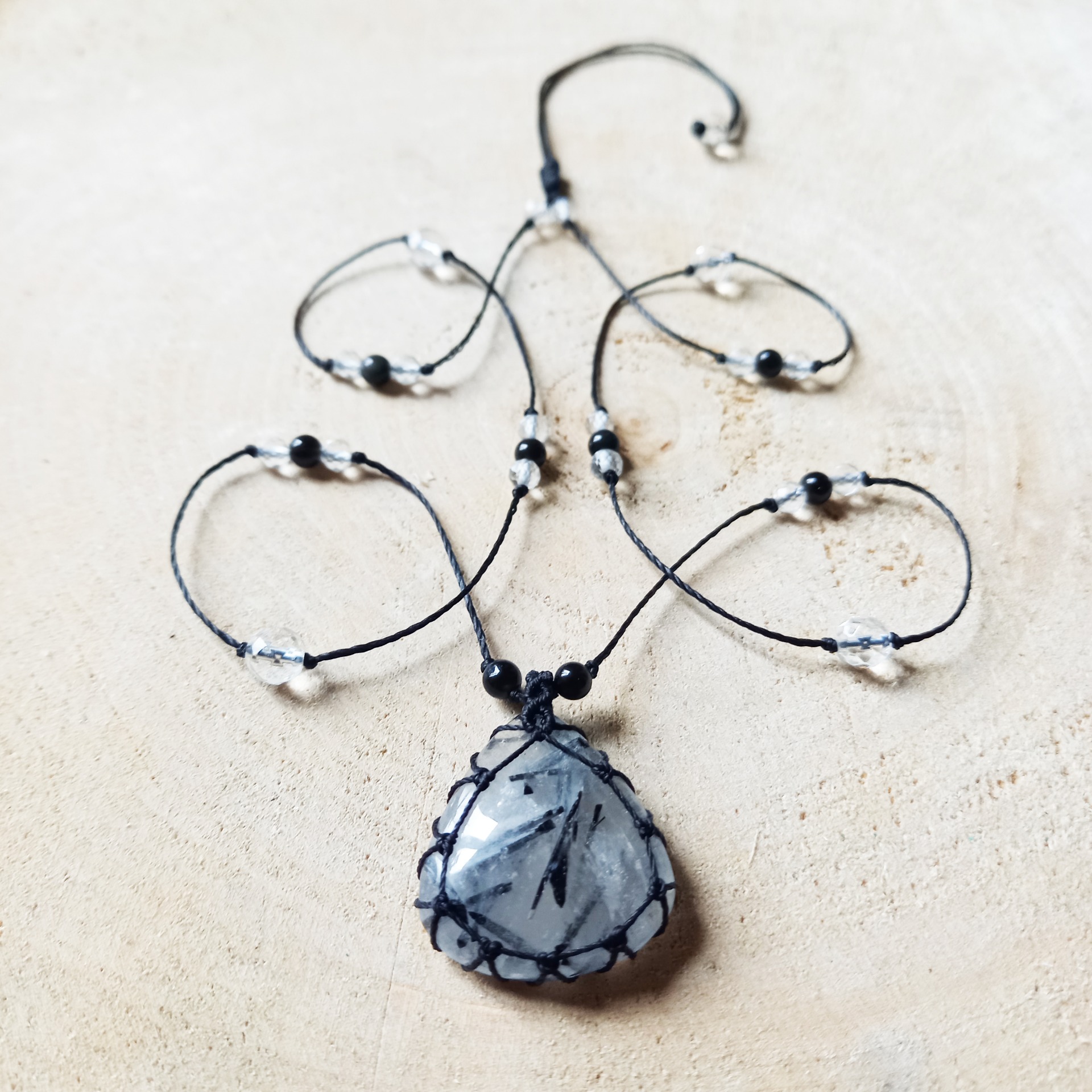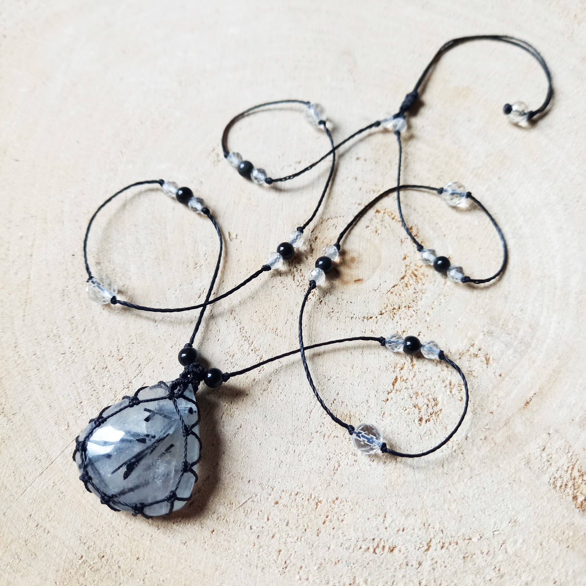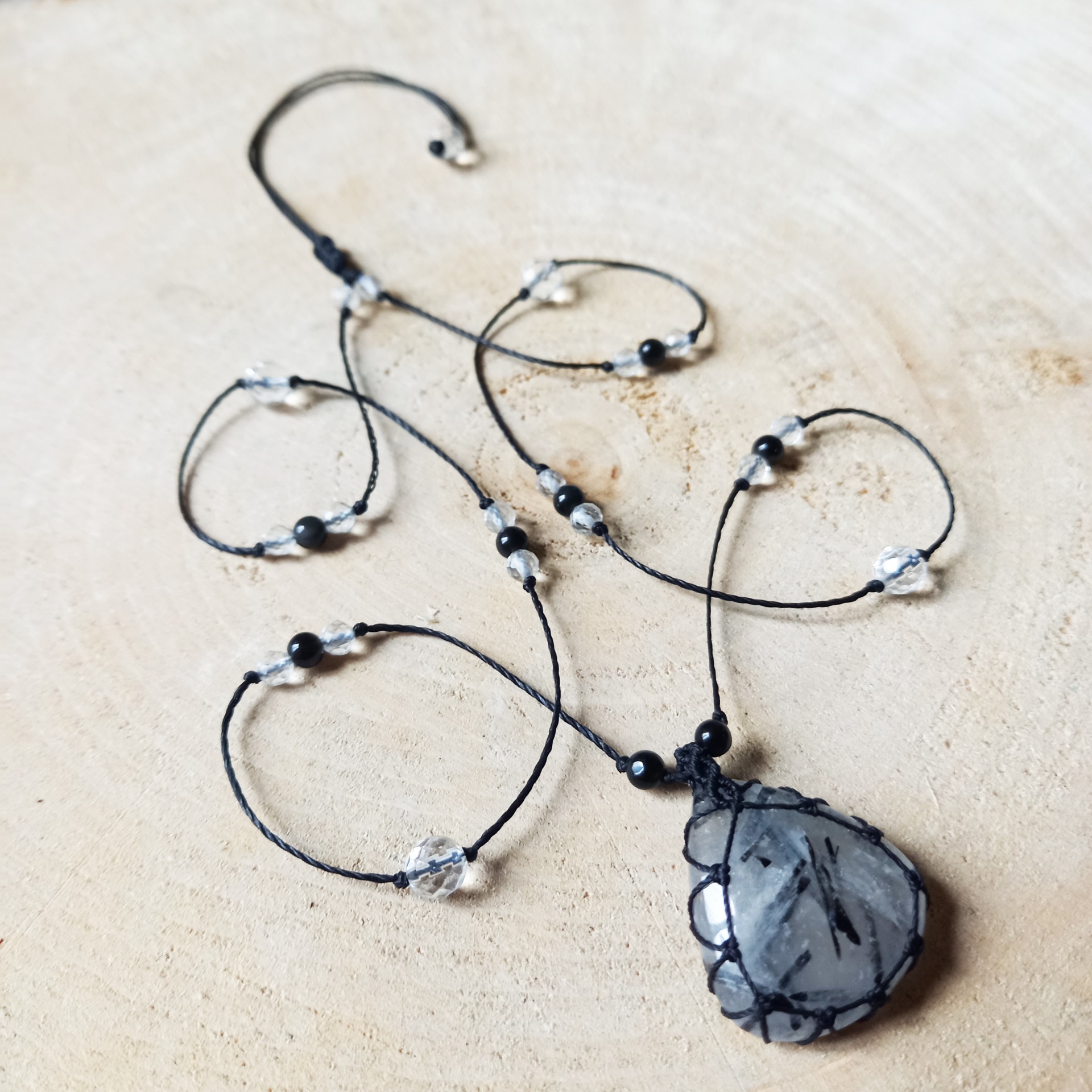 Sautoir en Quartz Tourmaline, délicat et poétique, agréable à porter.